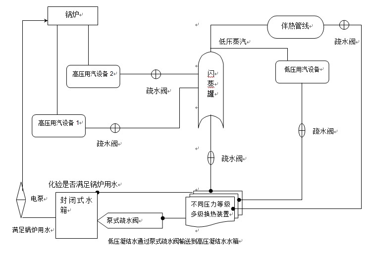 以上示意圖為我廠為化工企業和制藥行業提供的凝結水回收方案。